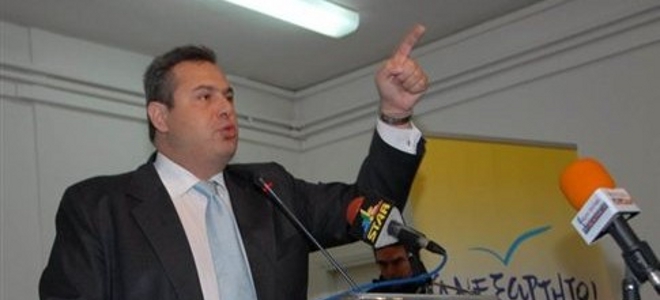 Ο κ. Καμμένος σε συνέντευξη Τύπου επιτέθηκε στο ΠΑΣΟΚ και στη ΝΔ λέγοντας πως η συγκυβέρνηση αποφάσισε να παραδώσει την εθνική κυριαρχία και κάλεσε τους νέους να μιλήσουν στις μεγαλύτερες ηλικίες, που, όπως ανέφερε, εκβιάζονται με απειλές για περικοπή των συντάξεων, για τις συνέπειες του μνημονίου.