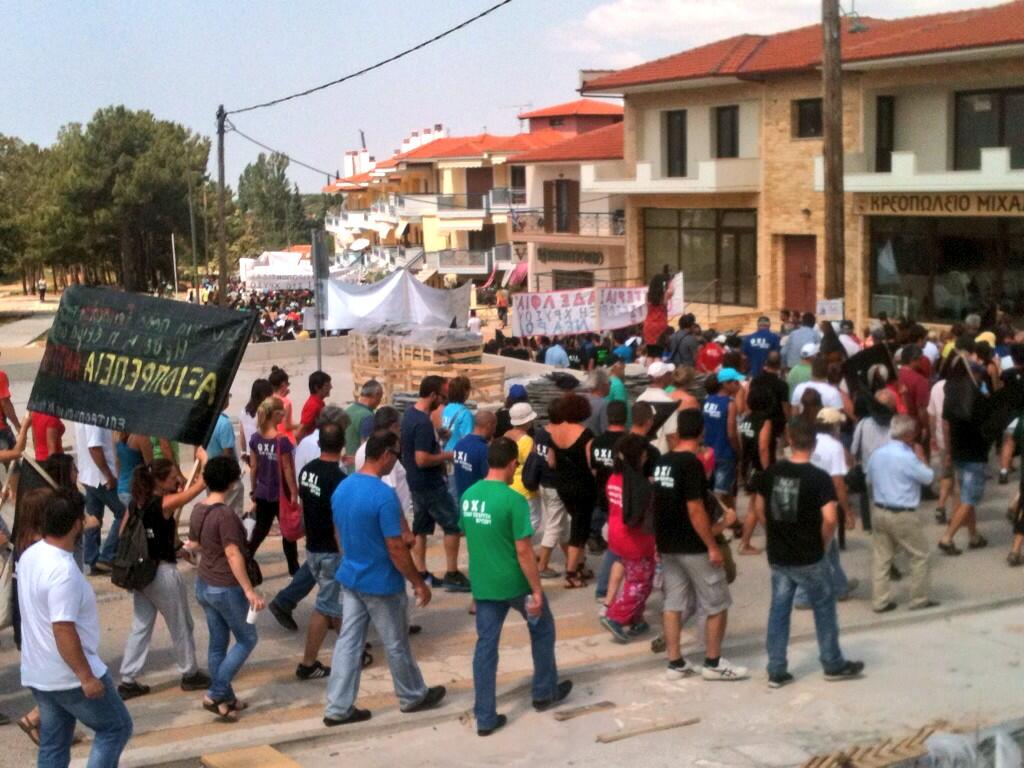 Οι συγκεντρωμένοι προέρχονται από τους τους "οικολόγους" της Ιερισσού και από άτομα του αντιεξουσιαστικού χώρου και επέστρεφαν από την πορεία που συμμετείχαν νωρίτερα το πρωί στον Πολύγυρο.