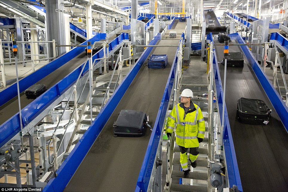 Η Daily Mail εξασφάλισε την αποκλειστική πρόσβαση στο Terminal 5 του αεροδρομίου Heathrow του Λονδίνου που διαθέτει το μεγαλύτερο ενιαίο σύστημα χειρισμού αποσκευών της Ευρώπης με 44 ζώνες παραλαβής αποσκευών και σήραγγες 2,8 χιλιομέτρων.
