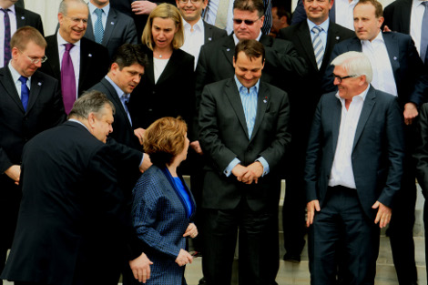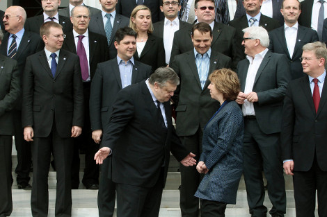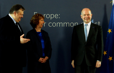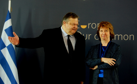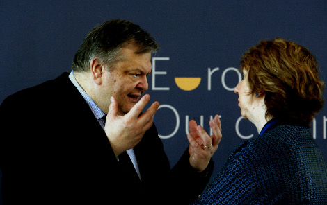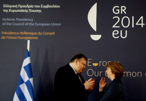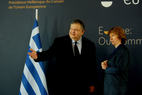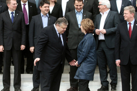 Εκπληκτοι οι υπόλοιποι υπουργοί Εξωτερικών της ΕΕ παρακολοθούσαν τον Ελληνα ομόλογό τους, Ευάγγελο Βενιζέλο να… ξελιγώνεται από συμπάθεια για την ύπατη εκπρόσωπο της ΕΕ για θέματα εξωτερικής πολιτικής και ασφάλειας Κάθριν Αστον, στην άτυπη σύνοδο κορυφής των ΥΠΕΞ της ΕΕ στην Αθήνα, το τελευταίο διήμερο.