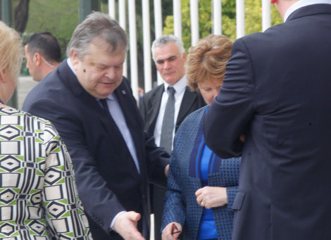 Ανάλογο το σκηνικό και κατά την υποδοχή των υπουργών, όπου ο κ. Βενιζέλος φαίνεται να έχει μια ενδιαφέρουσα συζήτηση με την κυρία Αστον: