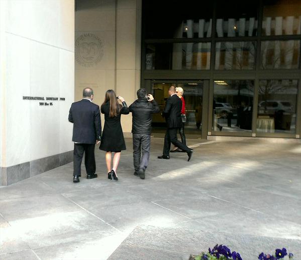 Στο σημείο αυτό απάντησα εκ μέρους όλων των ανταποκριτών, ότι έπρεπε να διευκρινίσει ότι το θέμα έγραψε το περιοδικό Σπίγκελ, και διορθώθηκε από το Ταμείο μετά από επίμονες ερωτήσεις των Ελλήνων δημοσιογράφων στην Ουάσιγκτον.