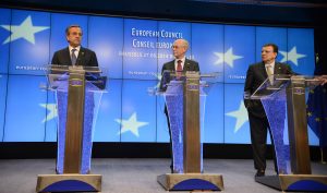 Ήταν και τότε Ιούνιος. Ιούνιος του 2014. Σύνοδος Κορυφής και πάλι με την Ελλάδα να παίρνει τα εύσημα για την ολοκλήρωση μιας επιτυχημένης και «πέραν του τυπικού» προεδρίας – στην έναρξη της οποίας, στο Ζάππειο, ο κ. Τσίπρας είχε αρνηθεί να παρευρεθεί. Ρομπάι και Μπαρόζο δίνουν τα συγχαρητήριά τους και ο Γιουνκέρ δηλώνει συγκινημένος για την εκλογή του στη θέση του προέδρου της Επιτροπής.